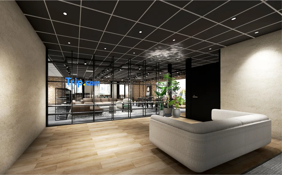 新オフィスでは、“インダストリアル”をテーマにした空間デザインが特徴で、特に「旅」を感じさせる要素が巧みに取り入れられています。ラウンジエリアはTrip.comならではの世界観を表現し、ワークスペースには快適さと機能性が備わり、全体的にモダンインダストリアルな印象を与えています。この新たなオフィス環境は、社員が創造的に働くための理想的な舞台を整えることに寄与しています。