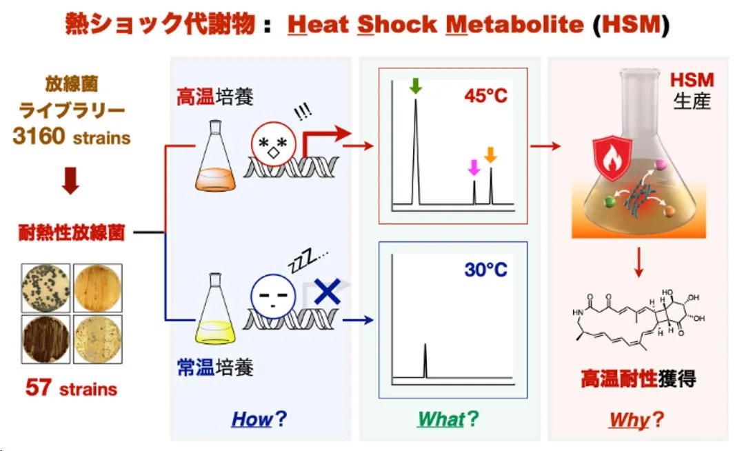研究チームは、放線菌を高温で培養し、その過程で生成される代謝物を分析しました。その結果、HSMとして知られるstreptolactam Dが高温条件で生産されることが確認されました。この発見は、放線菌がどのようにして高温環境に適応するのか、そのメカニズムを解明する手助けとなります。特に、細胞膜の安定化が生育促進に寄与している点は重要です。
