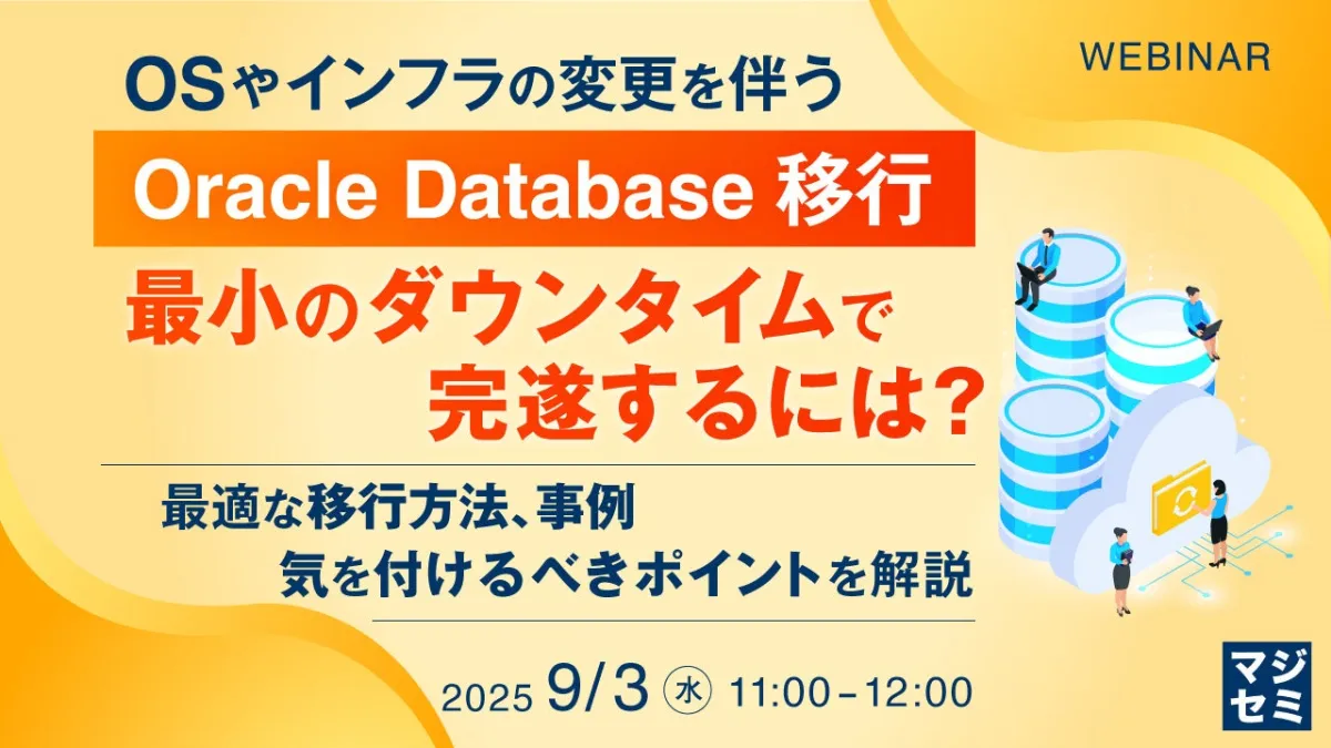 近年、多くの企業がオンプレミス環境からクラウドや異なるインフラへのOracle Database移行を検討しています。この動きは、コストの最適化やシステムの統合を目的としており、企業にとっては避けて通れない課題となっています。そこで、私たちは「OSやインフラの変更を伴うOracle Database移行、最小のダウンタイムで完遂するには?」というテーマでウェビナーを開催します。
