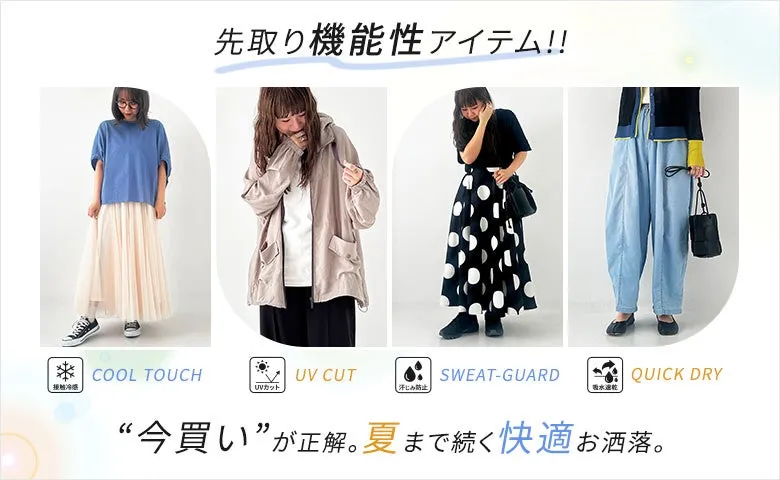 多機能な美脚テーパードパンツは、UVカットと吸水速乾機能を兼ね備えています。これにより、夏の暑さでもドライな肌触りを維持。シアーシャツを羽織ることで涼しげな印象を添えることができます。驚くべきストレッチ性と5サイズ展開が多数のお客様に支持されています。