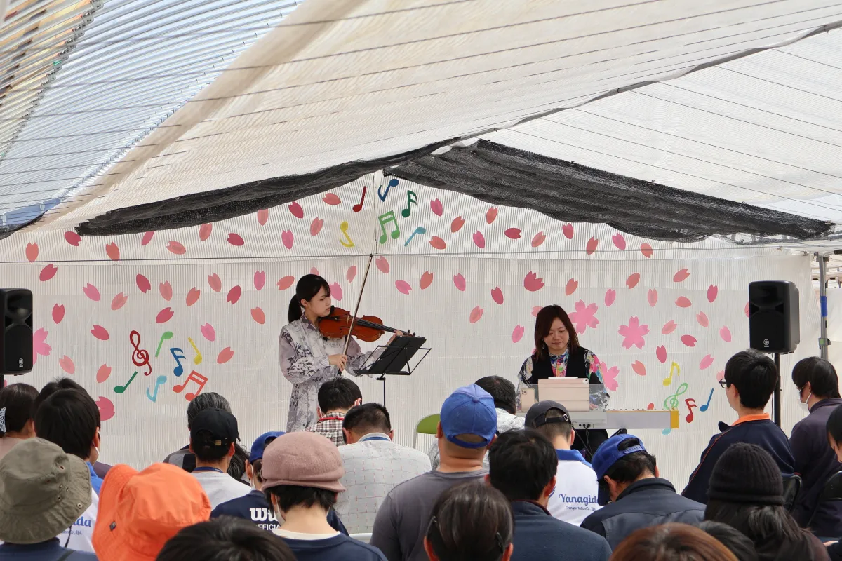 当日は、2名の演奏家による生演奏があり、穏やかな農園の空気の中で、参加者は美しい音楽に耳を傾けました。音楽は、働く仲間や家族、そして周囲の方々への感謝の気持ちを表現する素晴らしい手段となり、会場内には温かい雰囲気が広がりました。