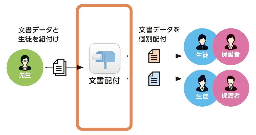 これまで、通知表や領収書などの個別文書を生徒に配付する際には、印刷し手渡すか郵送するという手間がかかっていました。このプロセスでは、時間やコストがかかるだけでなく、万が一の紛失リスクも存在しました。