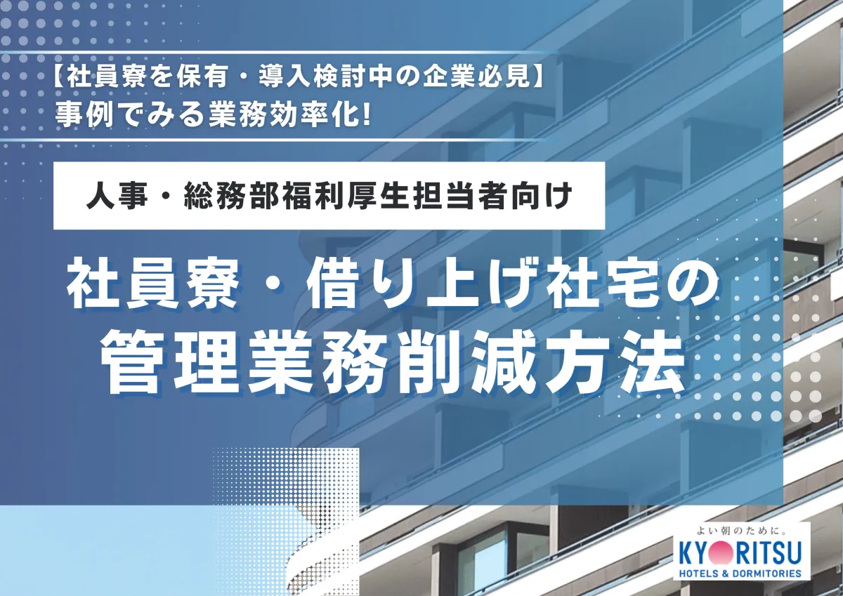 共立メンテナンスは、「社員寮・借り上げ社宅の管理業務削減方法」というホワイトペーパーを無料で公開しています。本書は、どういったリソースを活用し、業務を効率化できるのかを詳細に示しています。煩わしさから解放されながら、社員の満足度を向上させ、さらにはコスト削減につなげることが可能になります。
