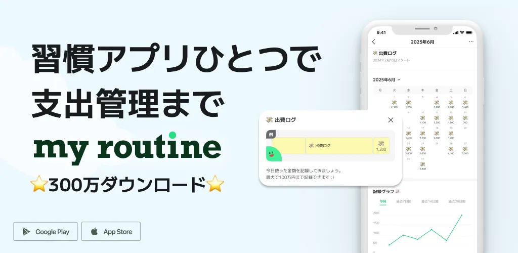 この機能は、日々の生活習慣や健康管理に加え、自分の支出の流れを一目で把握できる機能です。これまで『マイルーティン』は、タスクや予定を管理するアプリとして高評価を得てきましたが、新機能の導入で家計管理も手軽に行えるようになりました。これにより、上半期にあまり節約できなかった方も、下半期からは充実した家計管理を始めるチャンスがあります。