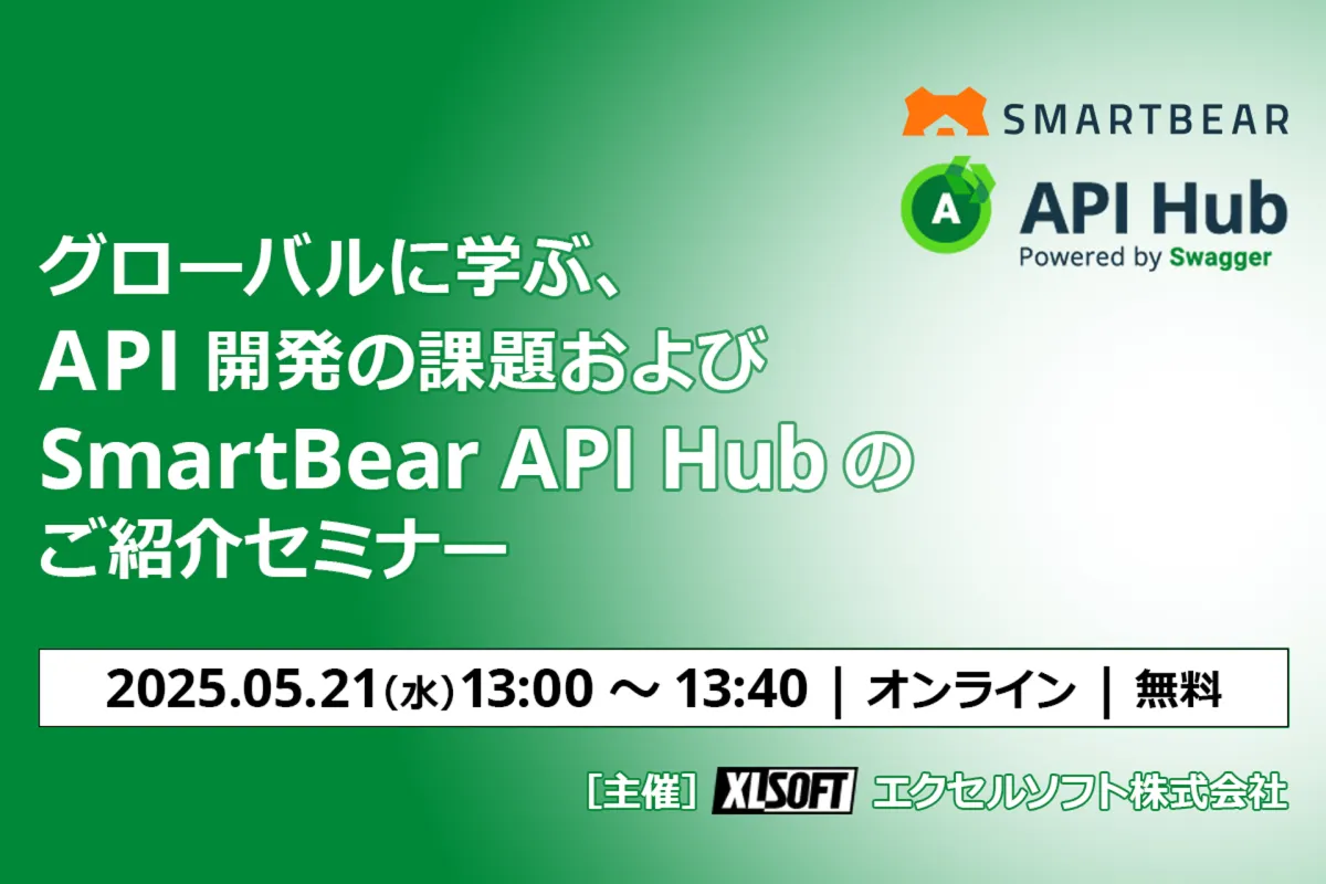 エクセルソフト株式会社は、5月21日(水)、オンラインセミナー「グローバルに学ぶ、API開発の課題およびSmartBear API Hubのご紹介」を開催します。このセミナーでは、API開発における主要な課題について説明し、SmartBear API Hubがどのようにそれを解決するかを紹介します。