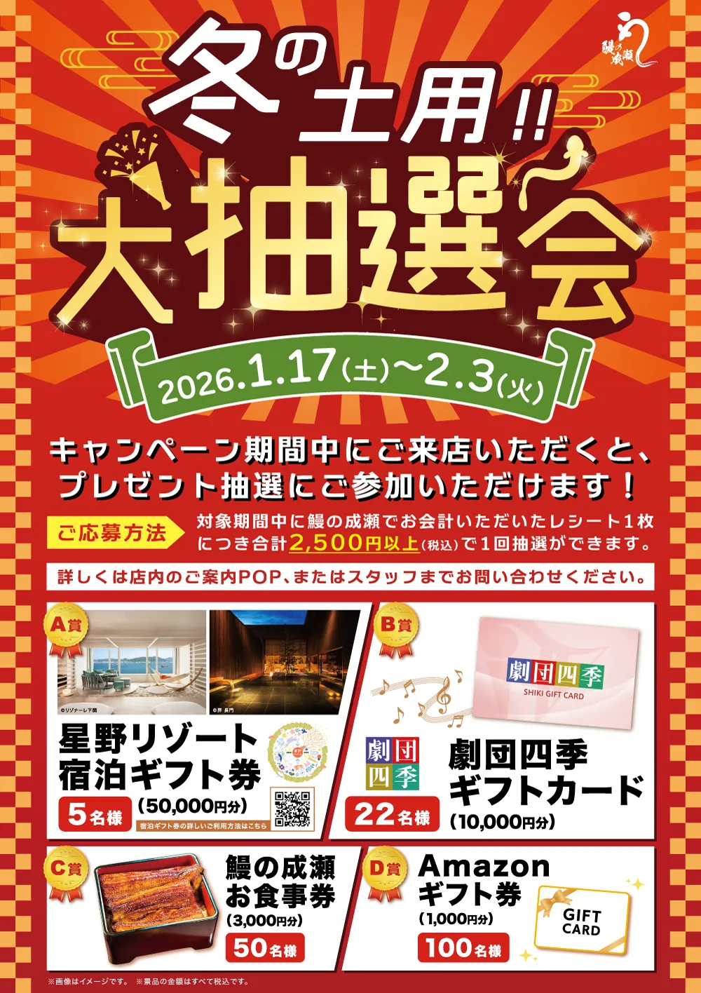 冬の土用!鰻の成瀬で大抽選会を楽しもう