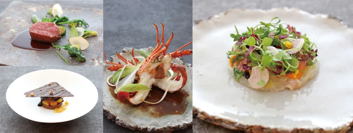 料理には地元の作家による美しい器が用意されており、食材との調和が楽しめる特別な一皿を堪能することができます。