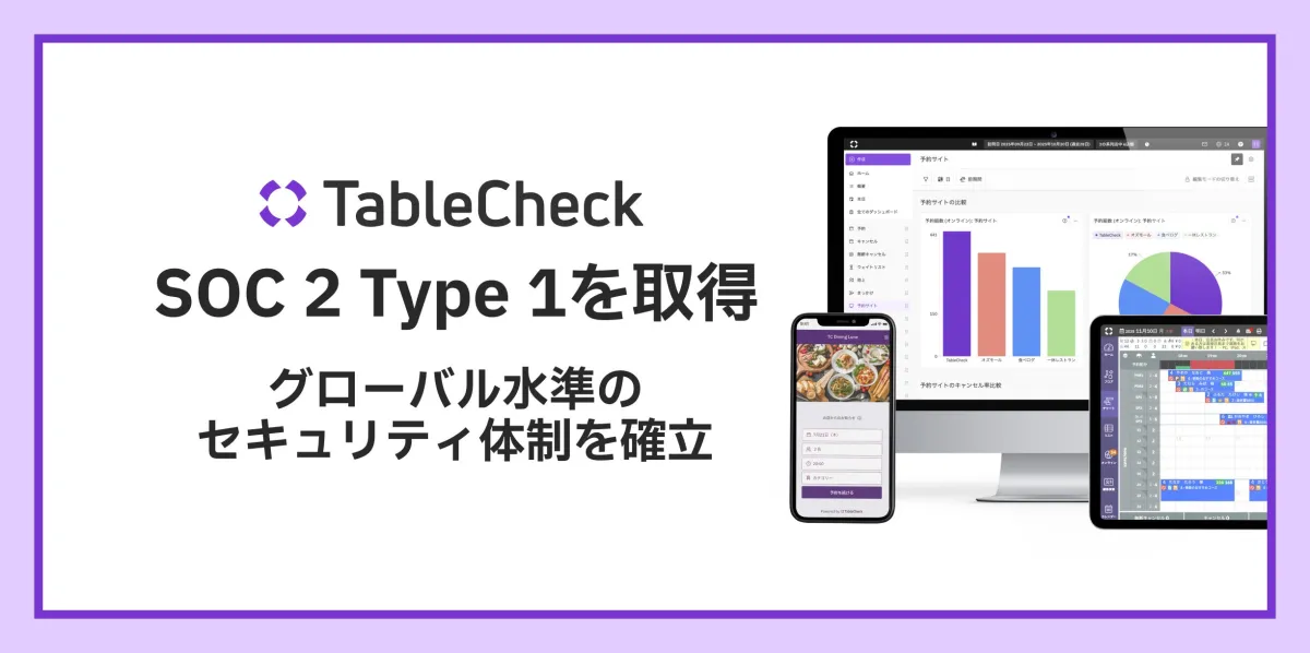 株式会社TableCheck(本社:東京都中央区)は、すべてのレストランと客をつなぐプラットフォームを展開し、この度、米国公認会計士協会(AICPA)が定めた『SOC 2 Type 1』保証報告書を取得したことをお知らせします。