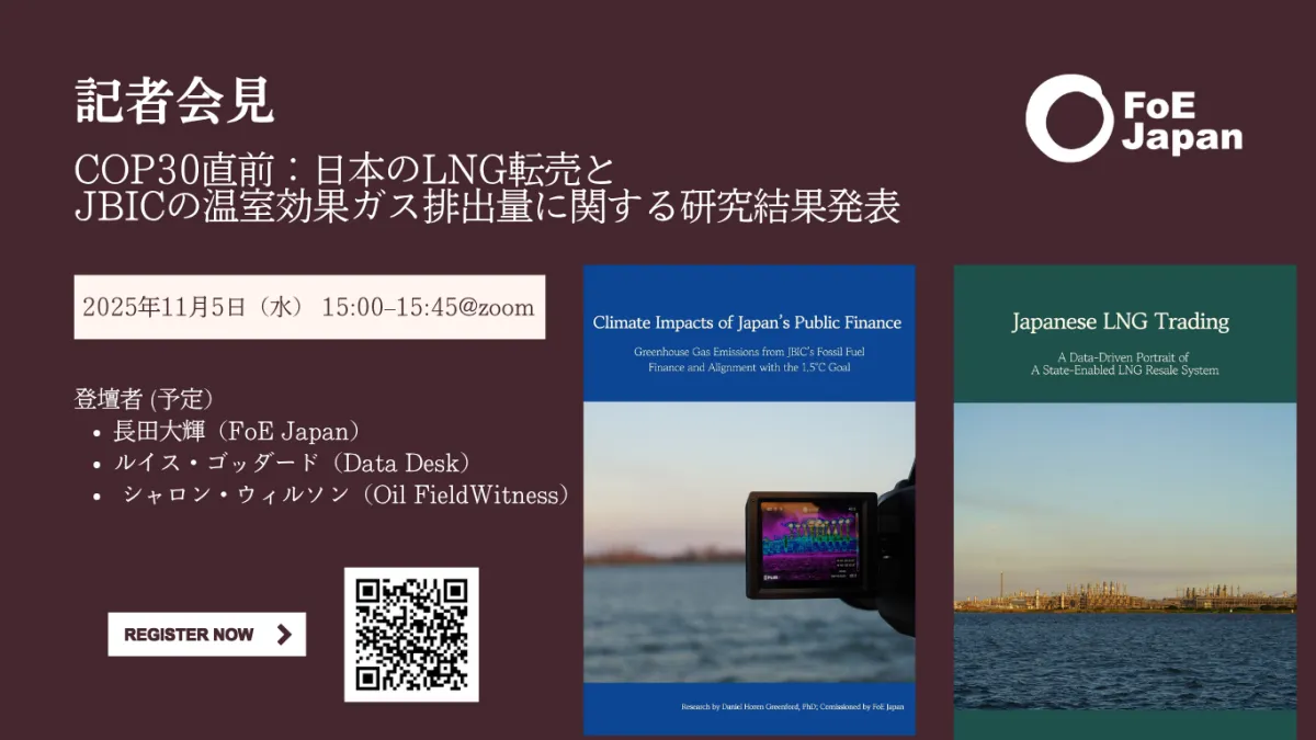 この新たな研究結果を共有するために、FoE Japanはオンライン記者会見を開催します。日英同時通訳にて、研究背景や意義を説明する予定です。