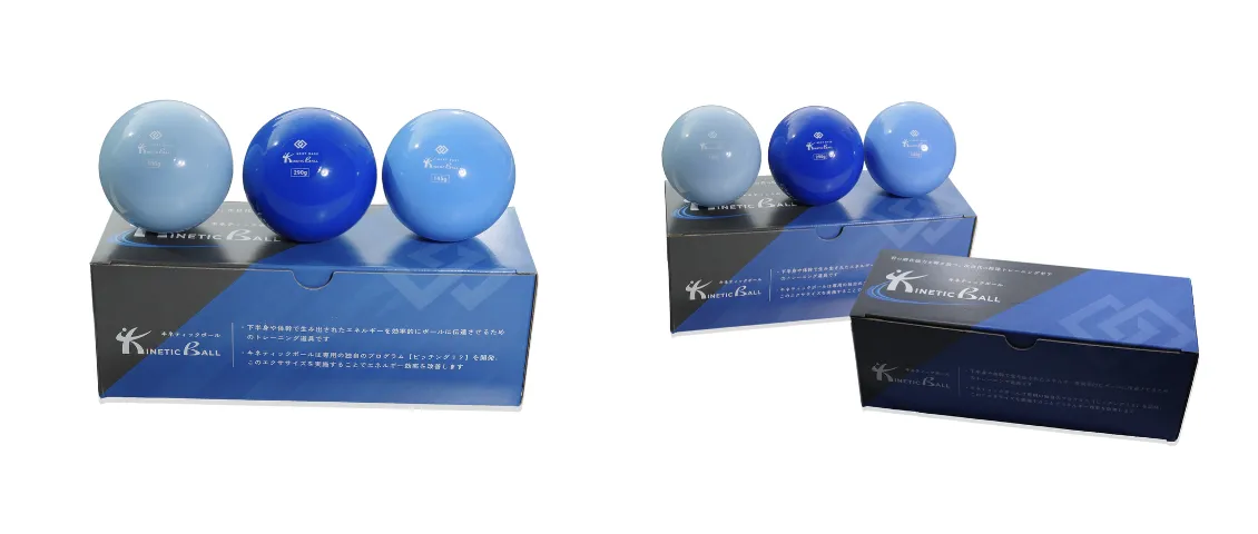 『キネティックボール』は、290g、145g、100gの3種類のボールをセットにして、各選手の感覚を研ぎ澄ますために作られています。