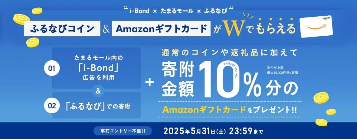 本キャンペーンでは、たまるモール内の『i-Bond』広告を利用してふるなびから寄附することで、ふるなびコインと最大10%のAmazonギフトカードをプレゼント。この機会にぜひ参加してみてはいかがでしょうか。特に、寄附を行うことで、現金だけでなく、景品も受け取れるというのは非常に魅力的です。