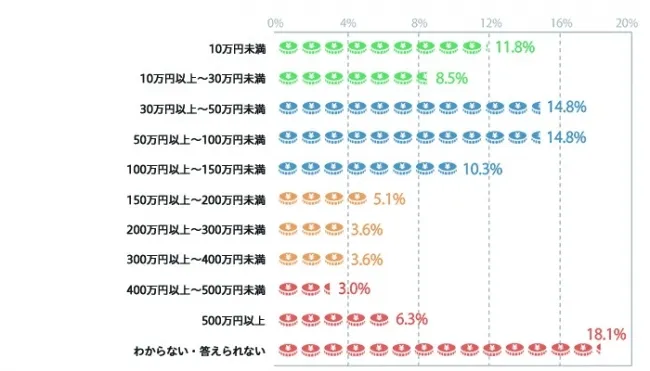 このような外部委託は、専門的な知識やリソースが必要なコンテンツマーケティングにおいて、急速に増加しています。特に、コスト面から見ても、運営費用は月30万円から100万円がボリュームゾーンとなっています。具体的には、30万円以上50万円未満、50万円以上100万円未満がそれぞれ14.8%で分かれており、100万円以上になると31.9%に達しています。こうした結果から、コンテンツマーケティングの重要性や、企業が期待する成果が高いことが窺えます。