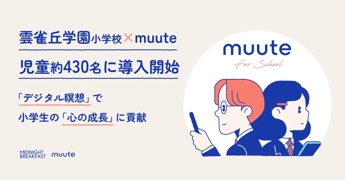 兵庫県宝塚市に位置する雲雀丘学園小学校が、ミッドナイトブレックファスト社のAIジャーナリングアプリ「muute for school」を導入しました。本校では、約430名の児童が対象となり、メンタルヘルスケアや自己理解の促進を目指す取り組みが進められています。子どもたちの思春期に必要な感情の自己表現を促すことで、心の課題に対してより良い対処法を見つけ出そうという意図があります。