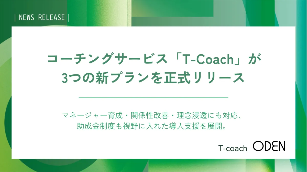 株式会社Odenが新たに発表したコーチングサービス「T-Coach」は、近年複雑化する組織内の人に関わる課題に応えるため、3つの新しい支援プランを登場させました。これにより、具体的なニーズに基づいた支援が可能とになり、より多くの企業に利用されることを目指しています。