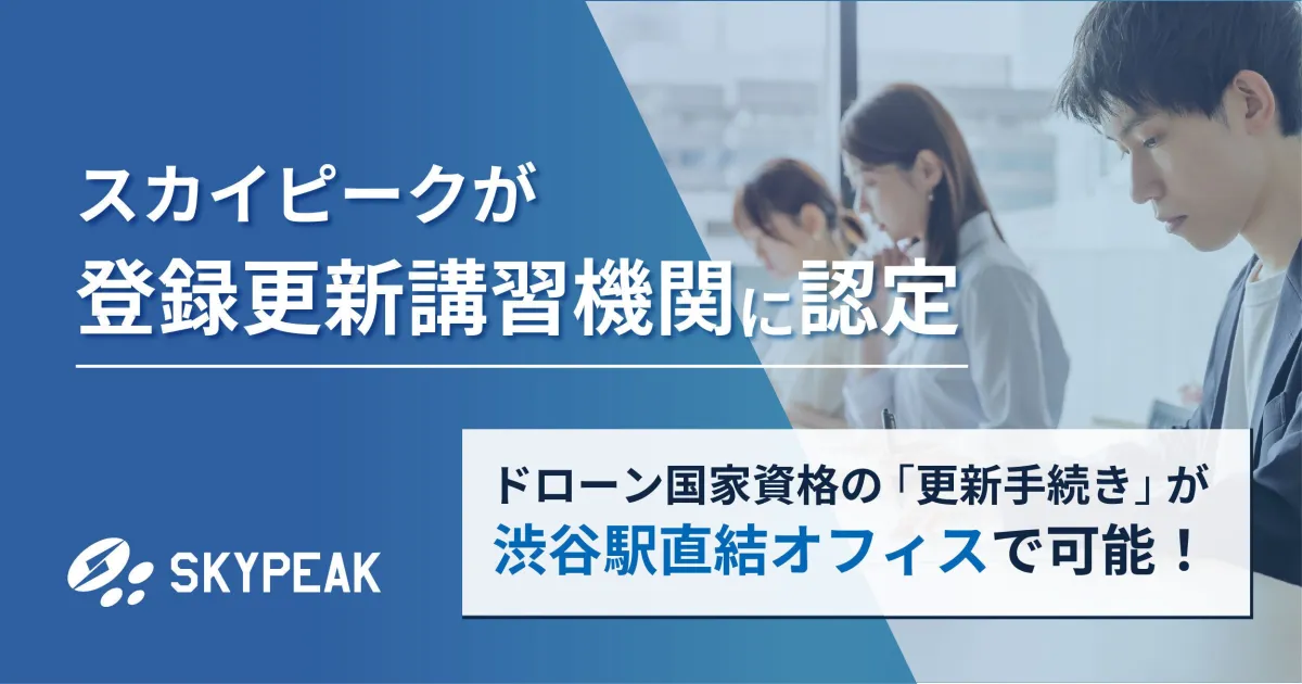 スカイピークは、国土交通省が認定する「登録更新講習機関」として登録され、無人航空機操縦士の一等および二等資格の更新のための講習を提供します。2022年12月にスタートした国家資格制度以来、すでに2万人以上の方々がこの資格を取得しており、更新が義務付けられています。