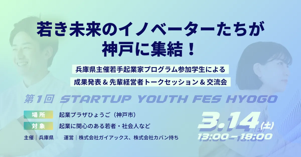 株式会社ガイアックスは、兵庫県との協力により、2026年3月14日に若者向けの起業イベント「第1回 STARTUP YOUTH FES HYOGO」を開催します。このイベントは、若年層の起業機運を醸成し、地域の起業家コミュニティの活性化を図ることを目的としています。