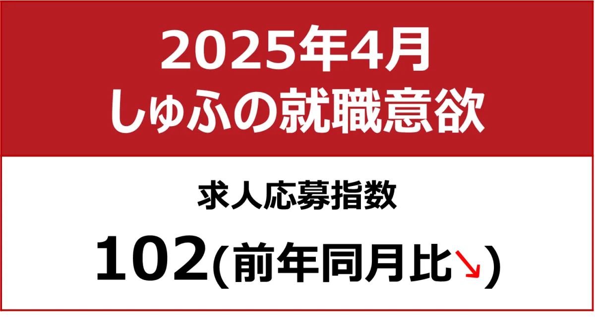 株式会社ビースタイルメディアが運営する求人サイト「しゅふJOB」では、主婦層向けの就職意欲の動向を示す「応募指数」を集計したところ、2025年4月の応募指数は102となり、前月比で4ポイントの上昇を記録しました。前年同月比ではわずかにマイナスを示していますが、応募者数は2ヶ月連続で過去最多を更新し、求人数は若干の減少にもかかわらず、主婦の就職活動が活発であることが確認されました。
