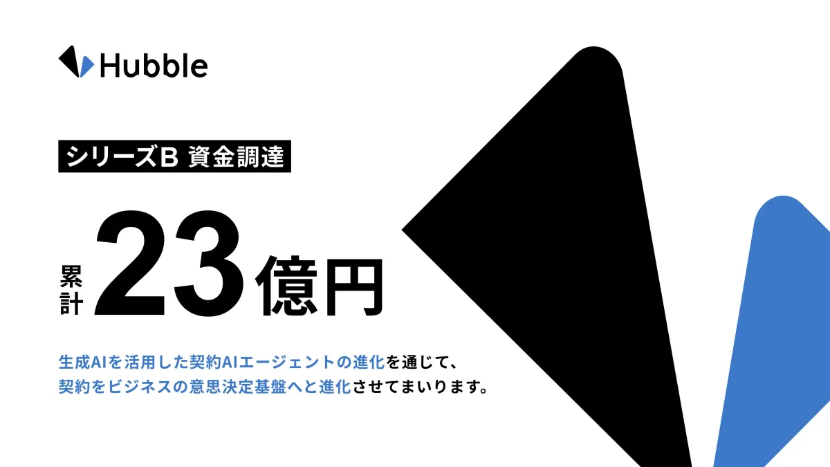 契約業務・管理クラウドサービス「Hubble」を提供する株式会社Hubble(東京都渋谷区、CEO:早川 晋平、CTO:藤井 克也、CLO:酒井 智也)は、シリーズBラウンドの最終段階としてシンガポール政府系投資会社Temasekが母体のグローバルベンチャーキャピタル、Vertex Ventures Southeast Asia & India(以下「Vertex Ventures SEAI」)およびDNX Venturesから総額8億円の資金を調達し、累計で23億円を達成したことを発表しました。この調達により、Hubbleは開発体制の強化と生成AIを活用したプロダクトの進化を加速し、契約DXの未来を開拓していくことを目指します。