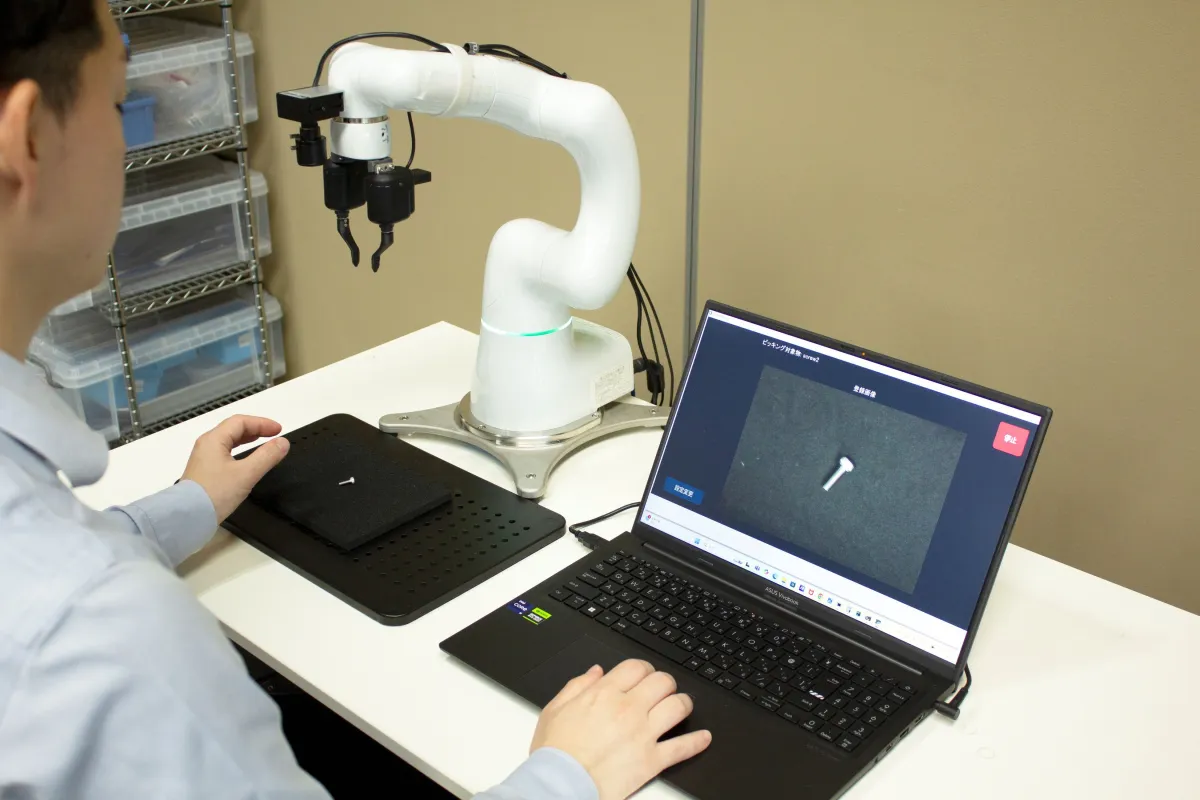 これまで、製造現場におけるバラ積みピッキングでは、作業開始前に対象物の3Dデータを取得し、複数の角度から撮影する必要がありました。この工程が多くの準備作業を要し、ロボットの導入ハードルを高める要因となっていました。しかし、Thinkerは独自のセンシング技術を導入することで、“ワーク登録”の簡略化に成功しました。