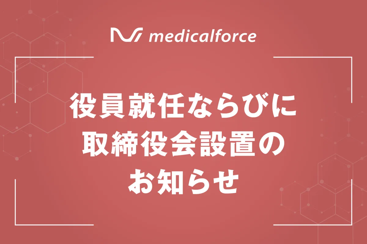 今回の体制変更を機に、メディカルフォースは持続的な成長基盤の確立とコーポレートガバナンスの強化を図ります。取締役会の設置によって、経営基盤の安定性を向上させ、企業戦略の策定や実行において、より一層の透明性と責任ある経営を実現します。
