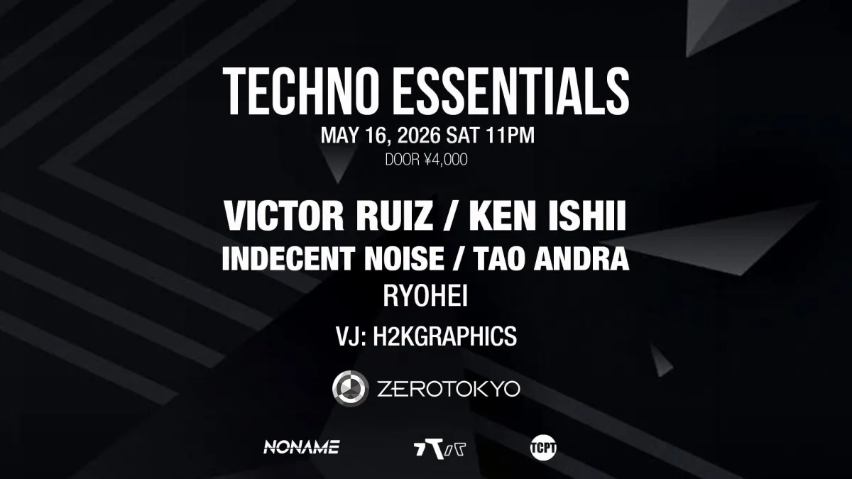 「TECHNO ESSENTIALS」は、2026年5月16日土曜日に開催されます。場所は東京都のZEROTOKYOで、開場は午後11時です。一般入場は4,000円、優先入場のファストパスチケットは3,000円で販売されています。