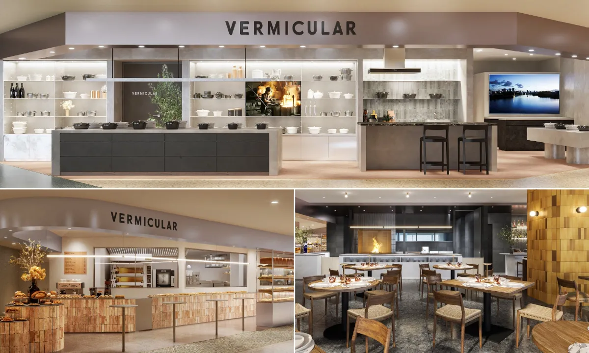 このフラッグシップショップでは、「最高のバーミキュラ体験」を基板に、ショップ、レストラン、ベーカリーが共存しています。来店者は、バーミキュラの料理の美味しさや、ブランドの哲学、メイド・イン・ジャパンのものづくりを様々な面から体感できる設計になっています。バーミキュラの愛用者はもちろん、初めての方でも楽しめる内容が盛りだくさんです。