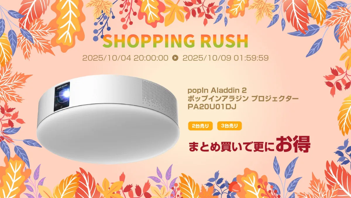 特に注目されている商品には、忘れ物防止のためのスマートタグや、掃除に役立つハンディブロワがあり、お客さまに大変好評です。最も人気があるのは、大人気のプロジェクター「PopIn Aladdin2」です。このプロジェクターは数量限定で再入荷しており、特別価格で購入できるチャンスです。動画視聴を快適に楽しむためのアイテムが揃っています。
