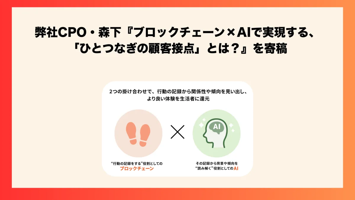 最近、SNSやECサイト、実店舗、イベント、アプリなど、企業と生活者の接点が増えてきました。しかし、これらの接点が増える一方で、行動が分断されてしまい、消費者像の把握が困難になっているのが現状です。この課題を解決するために、ブロックチェーンとAIをどのように活用できるのかについて、弊社CPOの森下が寄稿した記事を基に解説します。
