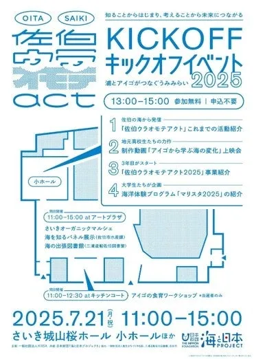 2025年7月21日、海の日に、一般社団法人KIISAは大分県佐伯市のさいき城山桜ホールで「佐伯ウラオモテアクト キックオフイベント2025」を開催します。これは地域の海洋環境問題を考えるための重要なイベントであり、多くの人々に参加を呼びかけています。