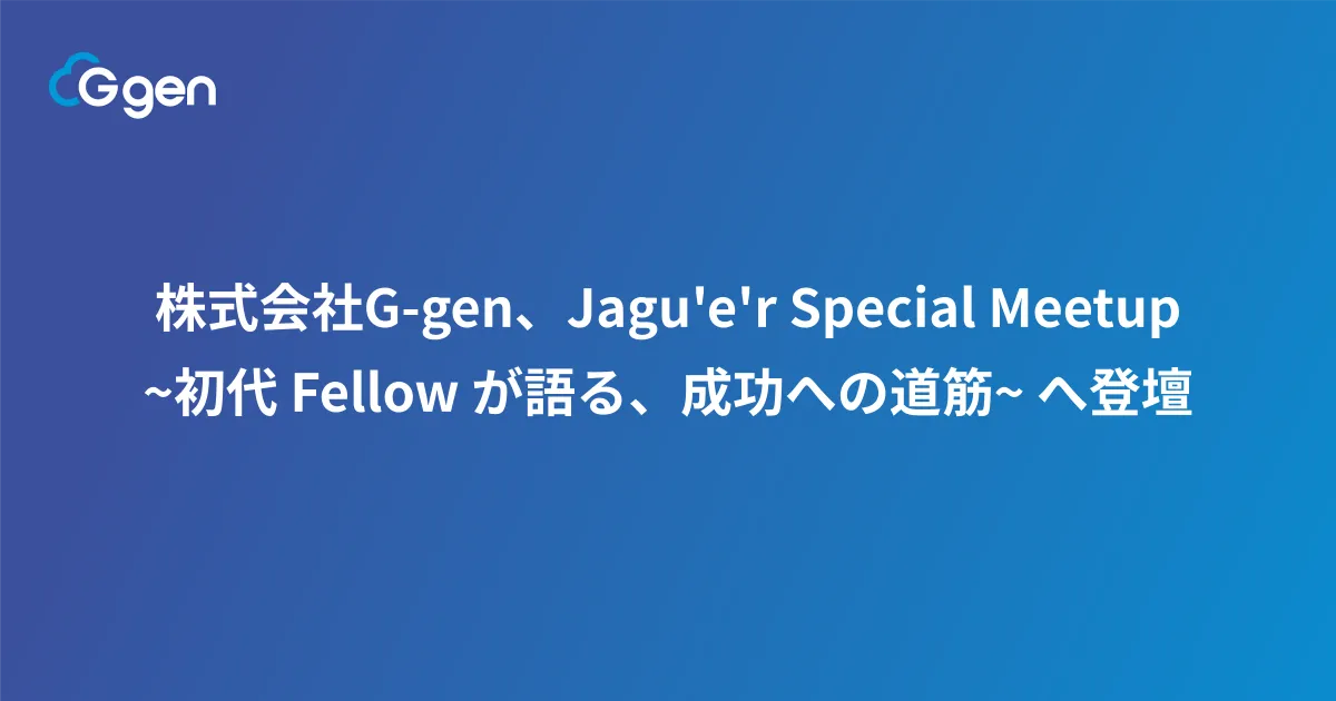 株式会社G-genは、2025年4月23日(水)に開催される「Jagu'e'r Special Meetup ~初代 Fellow が語る、成功への道筋~」において、同社から3名のエンジニアが登壇することをお知らせします。イベントは、日本国内のGoogle Cloudのエコシステムにおける重要な機会であり、参加者には多くの学びと交流の場を提供します。