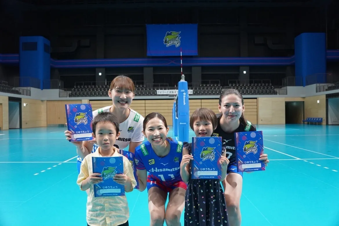 SAGA久光スプリングスが地域の小学生を対象にした「スプリングスじゆうちょう」の贈呈式を行いました。これは、小学生にバレーボールの魅力を伝えるとともに、夢や感動を体験してもらうことを目的とした取り組みです。