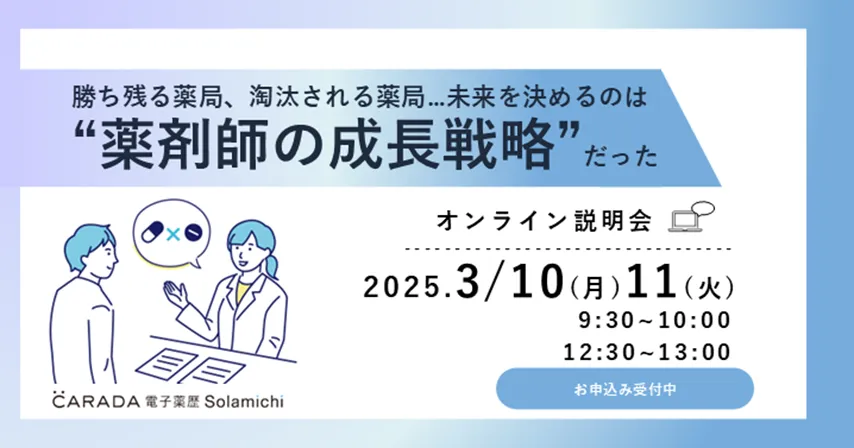 2025年3月10日(月)と11日(火)、株式会社ソラミチシステムが主催する「勝ち残る薬局、淘汰される薬局…未来を決めるのは“薬剤師の成長戦略”だった」というタイトルの無料オンラインセミナーが開催されます。このセミナーの目的は、薬剤師がどのように成長し、変化する医療環境の中で選ばれる存在になるかについて学ぶことにあります。