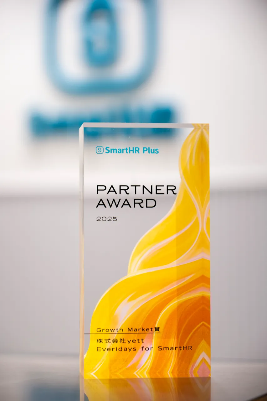 株式会社yettが提供する「Everidays for SmartHR」が、2025年の「SmartHR Plus Partner Award」においてGROWTH MARKET賞を受賞した。この賞は、SmartHRというクラウド人事労務ソフトと連携するアプリの中から、特にユーザーの利便性を高め、DX推進に貢献した企業を評価・表彰する目的で設けられている。