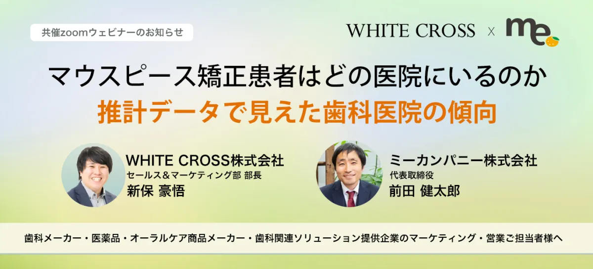 このウェビナーでは、推定患者数データを活用したマウスピース矯正領域に関する分析事例や、歯科医療関連企業がデータを活かしてどのように営業戦略やマーケティング施策を展開できるかに焦点を当てていきます。