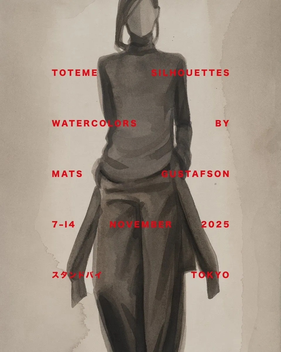 本展では、スウェーデン人アーティストMats Gustafsonによる大判の水彩画5点が展示されます。これらの作品は、TOTEMEが展開する2025年秋冬コレクションからインスピレーションを受けており、ファッションイラストレーションの新しい形を提案しています。Gustafsonは、ラインやプロポーション、動きによってTOTEMEの持つ彫刻的なシルエットを見事に再現し、ファッションの本質を探求しています。