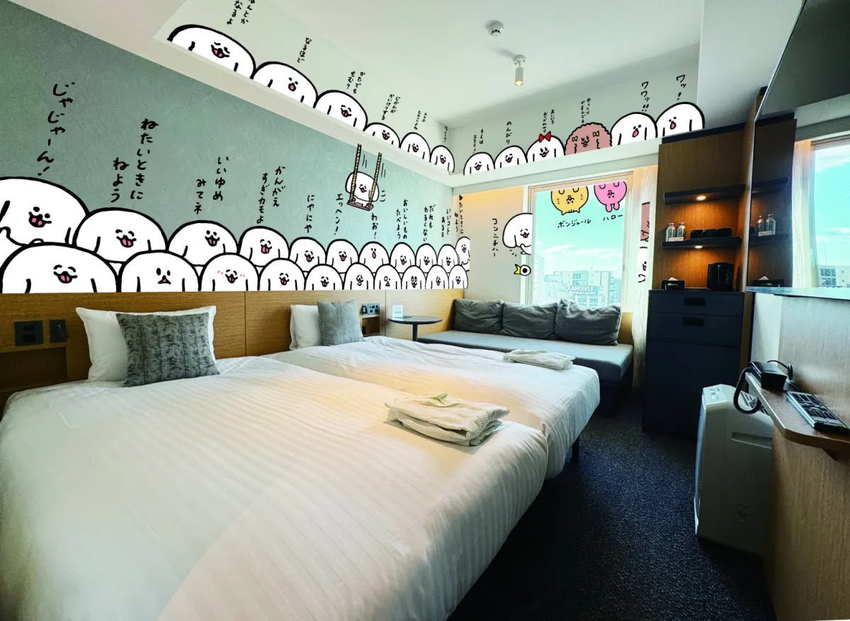 宿泊プランは二つの特別なお部屋、「ゆるセリフルーム」と「博多づくしルーム」で構成されており、それぞれ1部屋ずつの限定となります。『ゆるセリフルーム』では、ぺろちの愛らしい姿や可愛らしい言葉が部屋中に広がり、心温まる癒しの空間が演出されています。壁や窓、ドアまで、ぺろちの世界観が描かれたデザインは、宿泊客を自然と笑顔にしてくれることでしょう。
