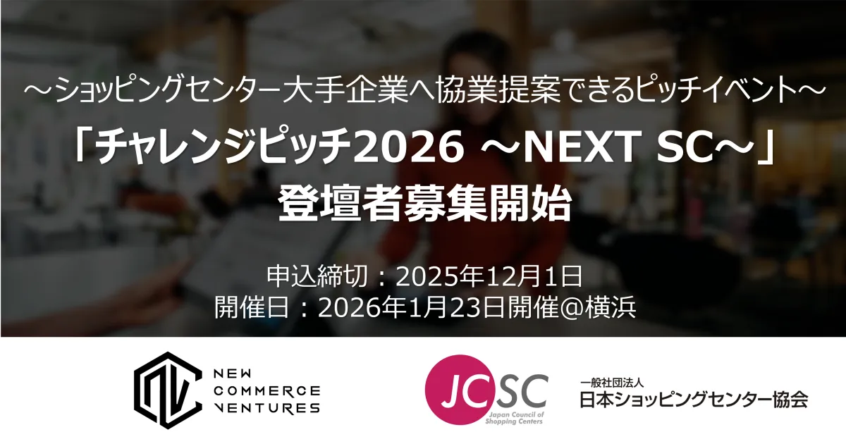 新しいビジネスの風が吹く中、ショッピングセンター(SC)の未来を形成するピッチイベント「チャレンジピッチ2026 ~NEXT SC~」が、2026年1月23日にパシフィコ横浜で開催されることが発表されました。本イベントはコマース・リテール領域に特化したベンチャーキャピタル、New Commerce Ventures株式会社(NCV)と一般社団法人日本ショッピングセンター協会の共催により実現されます。