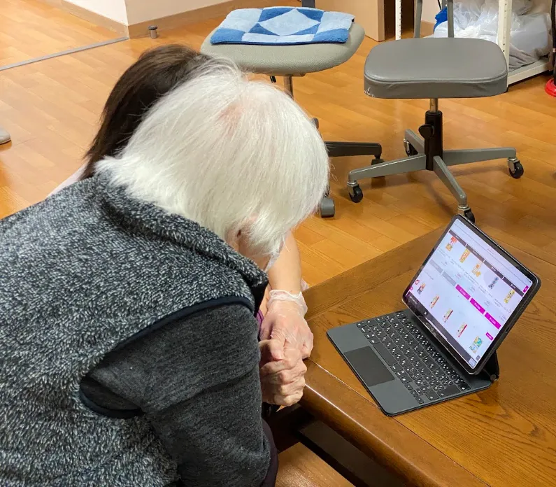 オンライン注文: 介護サービス利用者が介護施設で商品をオンラインで注文します。