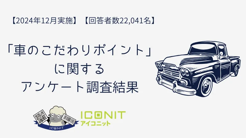 2024年12月12日、株式会社メディアシークが提供するアプリ「QR/バーコードリーダー・アイコニット」において、車に関するアンケートが実施されました。この調査では、22,041名のアプリユーザーからの回答を集め、車のこだわりポイントに関するデータを得ることができました。
