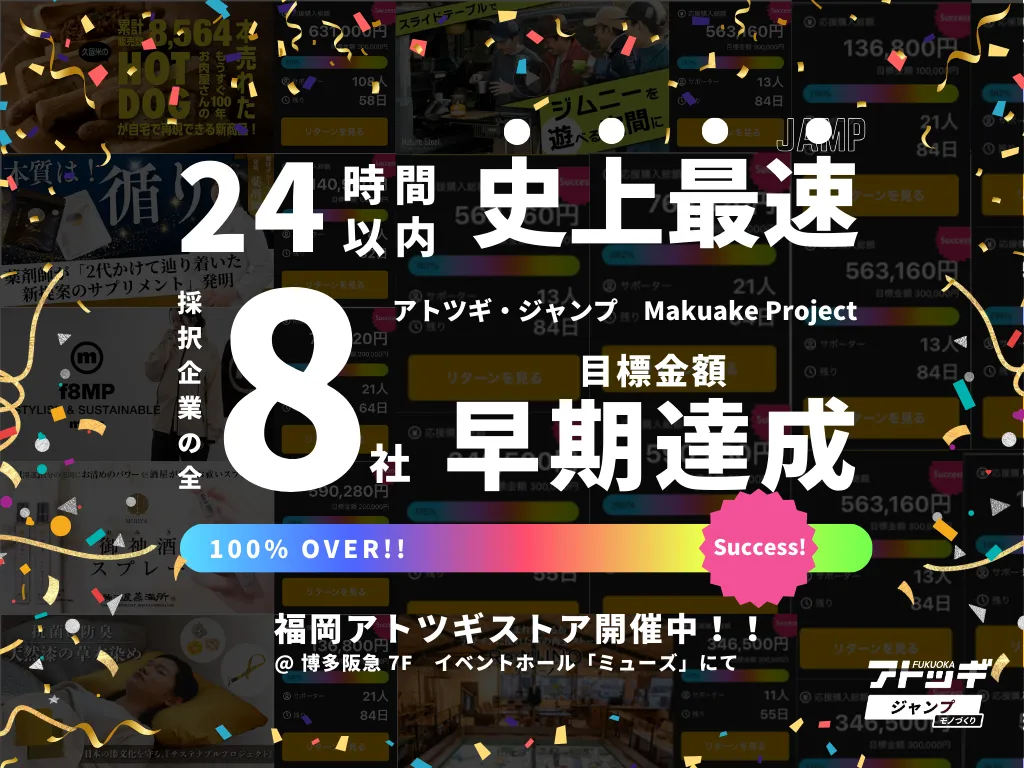 福岡県におけるアトツギ支援プログラムが、画期的な成果を上げたことをご報告します。現在、地域の産業を支える取り組みとして、新規事業を立ち上げる後継者たちの支援が行われている中、クラウドファンディングサイト『Makuake』を通じてリリースされた8社の新商品全てが、販売開始からわずか24時間以内に目標金額を達成しました。これは実に、このプログラムの歴史において初めての出来事となります。