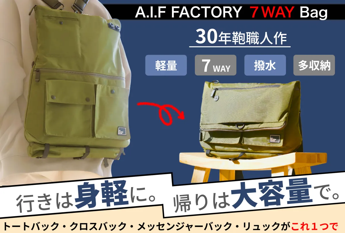 柔軟性を兼ね備えた多機能バックパック「A.I.F FACTORY 7WAY Bag」