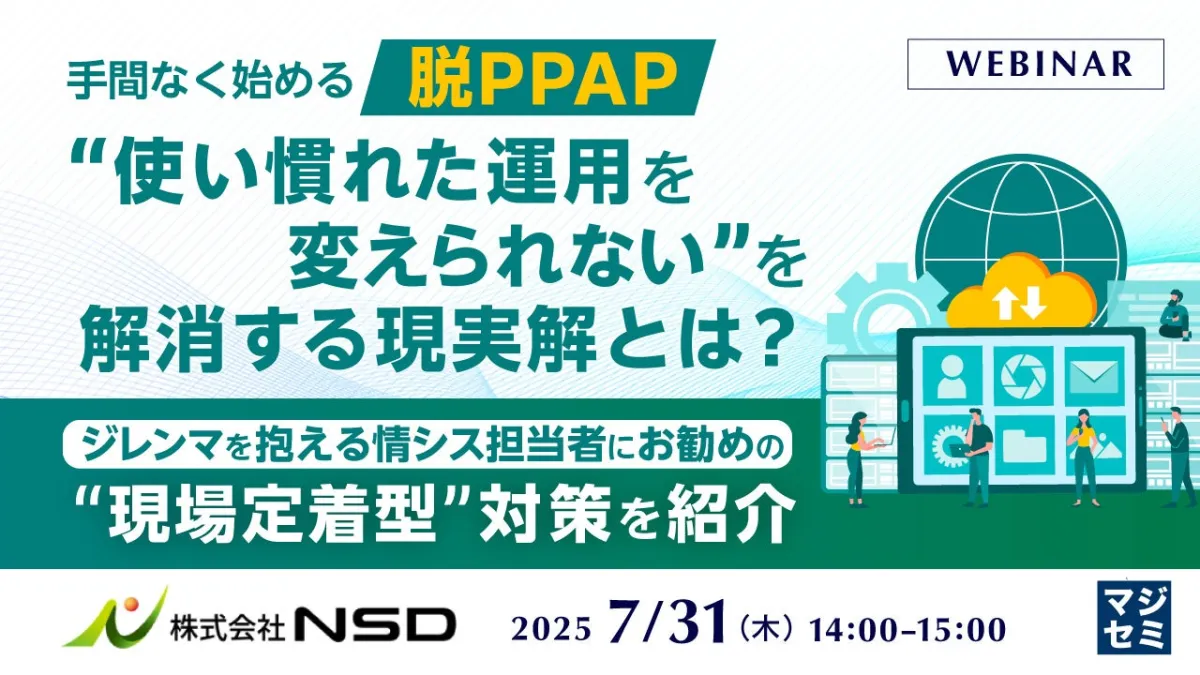企業が抱えるPPAP運用の課題を理解し、代替手段の実行に向けた一歩を踏み出すためのウェビナーにぜひご参加ください。この機会が、行動のきっかけとなることを願っています。マジセミでは、今後も「参加者の役に立つ」ウェビナーを開催していきます。
