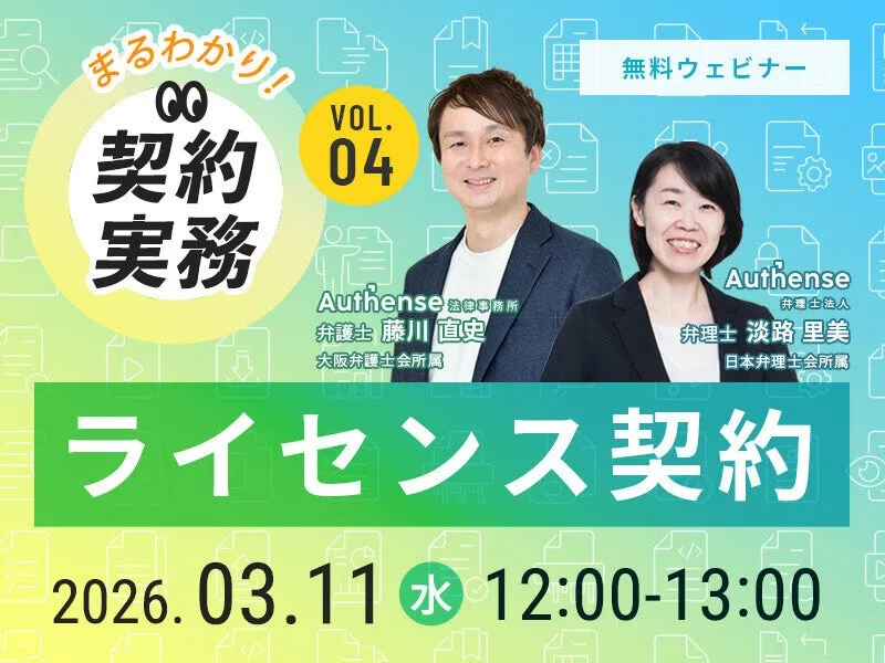 法務の専門家にとって、ライセンス契約は避けて通れない重要なテーマです。特許権や商標権、著作権を活用するビジネスモデルが一般化する中で、契約の正確な設計と効果的な管理は企業の成長に欠かせません。Authense法律事務所が提案するウェビナー「まるわかり!契約実務」Vol.4は、こうした契約実務について深く掘り下げる場となります。