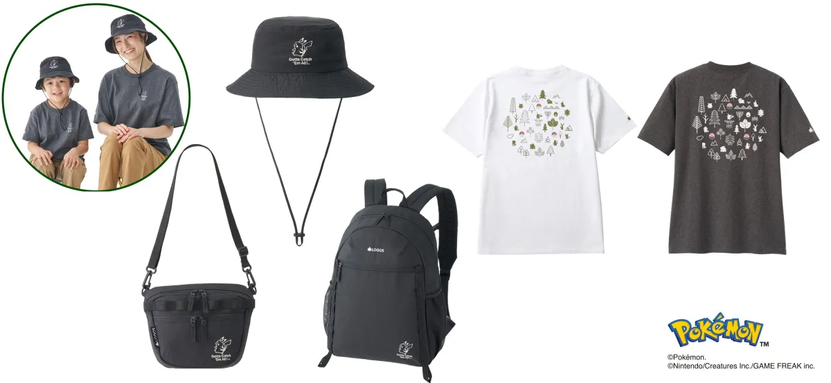 この新しいラインアップには、ピカチュウやフシギダネ、ヒトカゲ、ゼニガメなど、人気のポケモンたちがデザインされたアイテムが豊富に揃っています。ワンタッチテント、チェア、テーブル、マグなどのアウトドアアイテムの他、Tシャツやハットなどのアパレル商品も含まれ、全体でなんと19アイテムが展開されます。