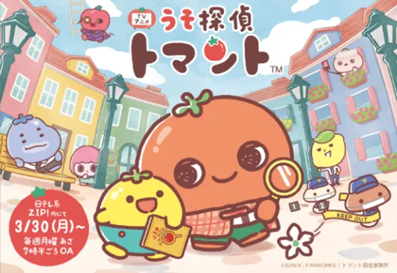 「うそ探偵トマント」は、サンエックス株式会社と株式会社ファンワークスの共同制作によるキャラクターコンテンツであり、やさいやくだものを題材にした可愛らしいキャラクターたちが登場します。このアニメは、幅広い世代に向けて“かわいい×ミステリー”をテーマにした新しいジャンルとして楽しめる作品となっています。アニメの放送は、日テレ系の情報番組「ZIP!」の中で2026年3月30日(月)より開始されます。