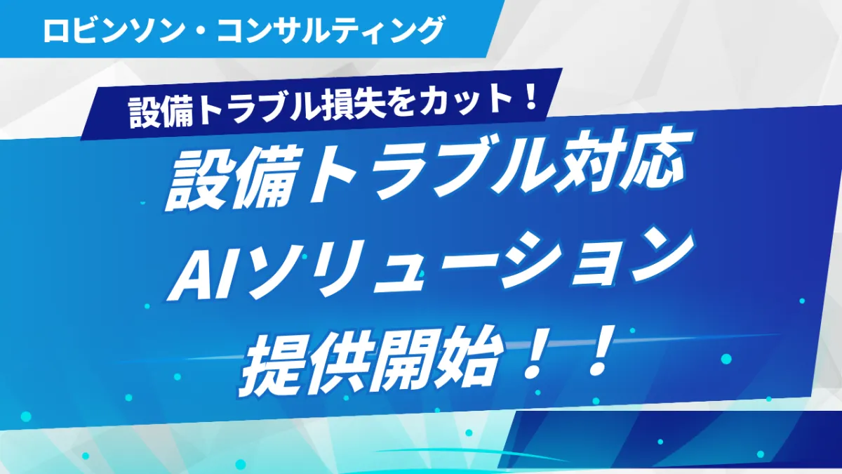 株式会社ロビンソン・コンサルティングは、製造業の設備保全の現場に特化したAIソリューションの提供を開始しました。本ソリューションは、お客様の設備環境や課題に応じてフルカスタマイズ可能であり、設備トラブル発生時の迅速な復旧作業と報告書作成の自動化を強力にサポートします。
