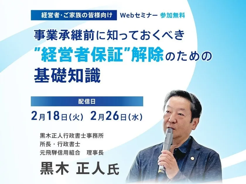 この貴重な機会を逃さずに、ぜひ参加を検討してみてください。経営者保証の解除に関する知識を深めることで、安心して事業承継を行うための一歩を踏み出しましょう。