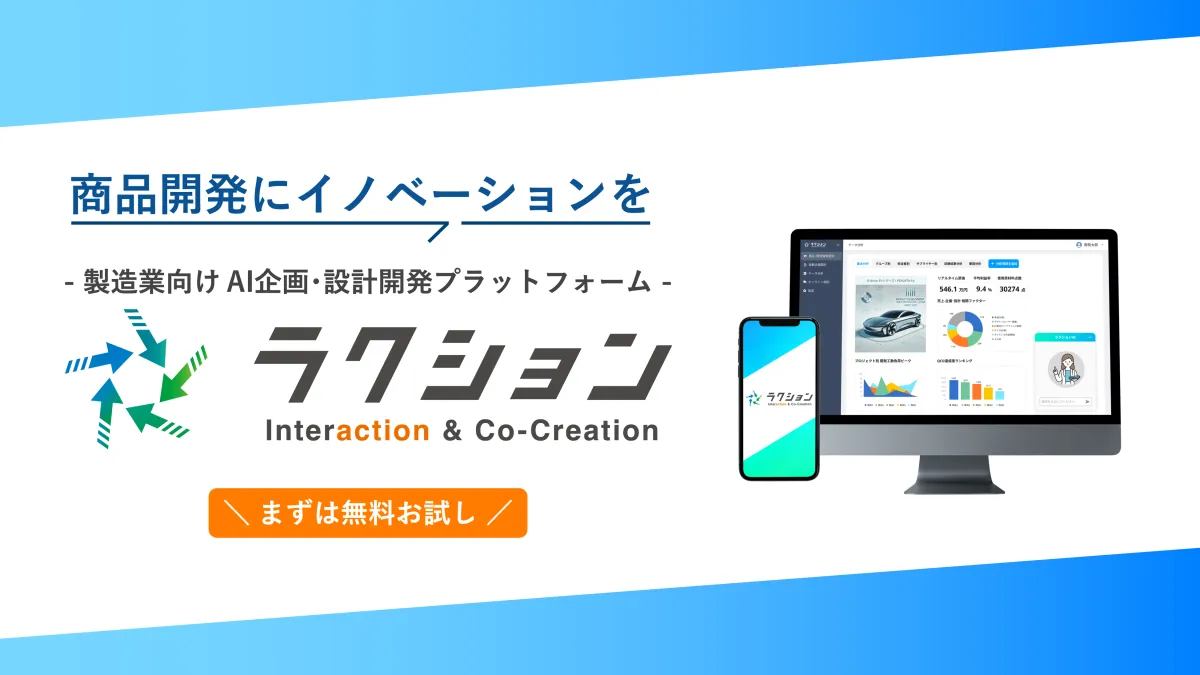 「ラクション」は、製造業の企画・設計開発業務を支援するAIシステムです。このシステムは、社内の情報を有効に利用し、デジタルトランスフォーメーション(DX)を実現させるために設計されています。データを活用した商品開発を促進する機能があり、情報収集や仕様検討、書類作成をスムーズに行うことができます。