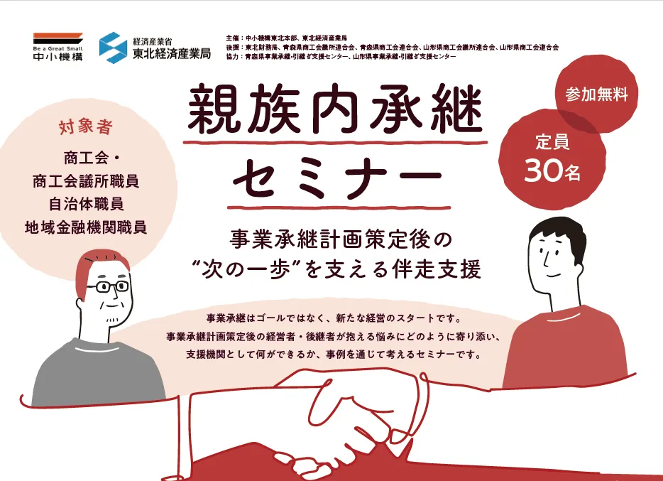 今回は、青森市と山形市で開催される「親族内承継セミナー」に注目します。