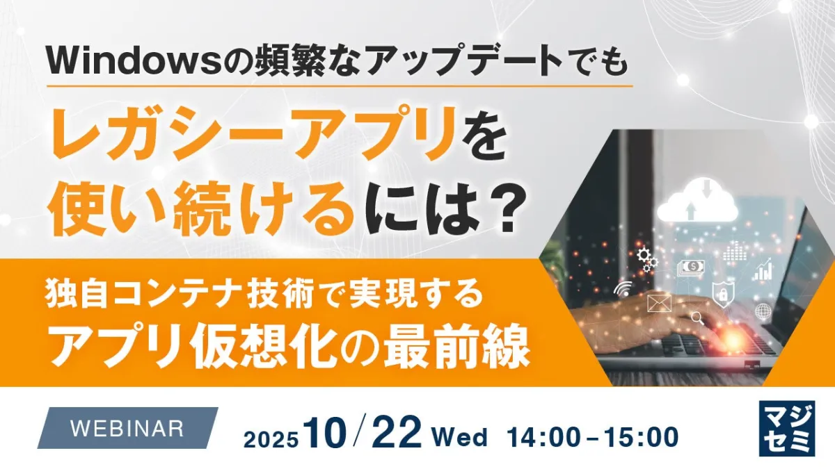 この度、私たちマジセミは、Cloudpagingに関するウェビナーを開催いたします。このセミナーでは、Cloudpagingのアプリ仮想化技術をデモや実際の事例を交えながら詳しく解説し、どのようにしてレガシーアプリを最新のOS環境でも使い続けられるのかを探ります。